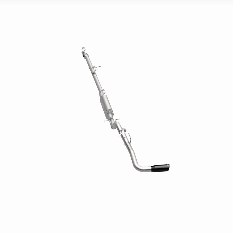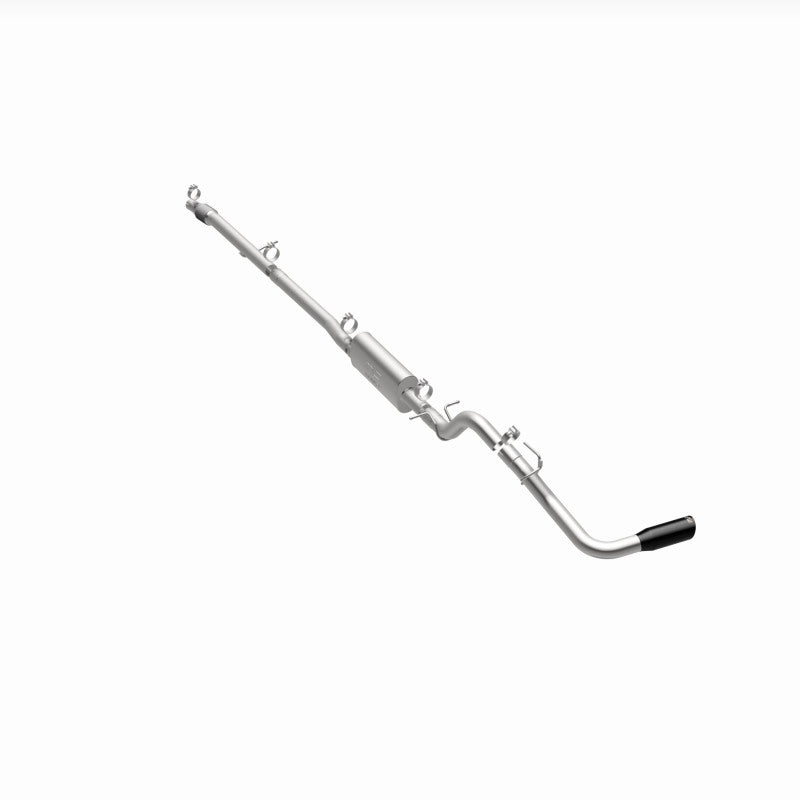 The MagnaFlow 2024 Ford Ranger SPEQ Series Cat-Back Performance Exhaust System 19634 brings out the personality of your truck with our signature resonant, powerful exhaust tone and dyno-proven performance. #19634 3 in. diameter mandrel bent main piping passes through an all-new specifically tuned performance oval muffler before exiting in a single driver side rear exit with a 4 in. black chrome welded-on double wall angle cut rolled edge tip. This mid-size truck exhaust kit is the perfect equalizer between sound and performance. Upgrade your truck to the next level with an exhaust that has the pipes to put other trucks to shame. With this system your truck will be producing moderate exterior and mild interior sound levels while leaving other trucks feeling envious at every stoplight. Exhaust kit 19634 features a cat-back exhaust layout that replaces your trucks stock exhaust components from near the catalytic converter on back. Extensive 3D scanning during development has resulted in a direct-fit design that you can easily install yourself. 19634 is produced using CNC precision robotic manufacturing techniques and is backed by MagnaFlow's 1-year limited finish warranty and limited lifetime construction warranty.